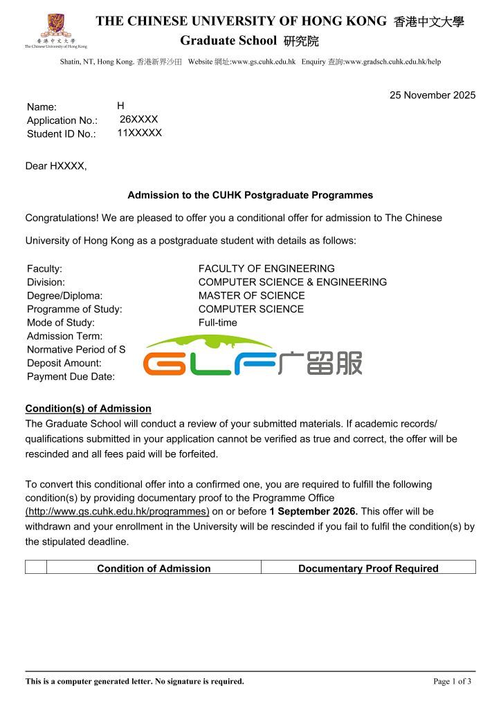 H同学是西安电子科技大学大四同学,成绩优秀,科研出色,被香港中文大学计算机科学和工程硕士录取。