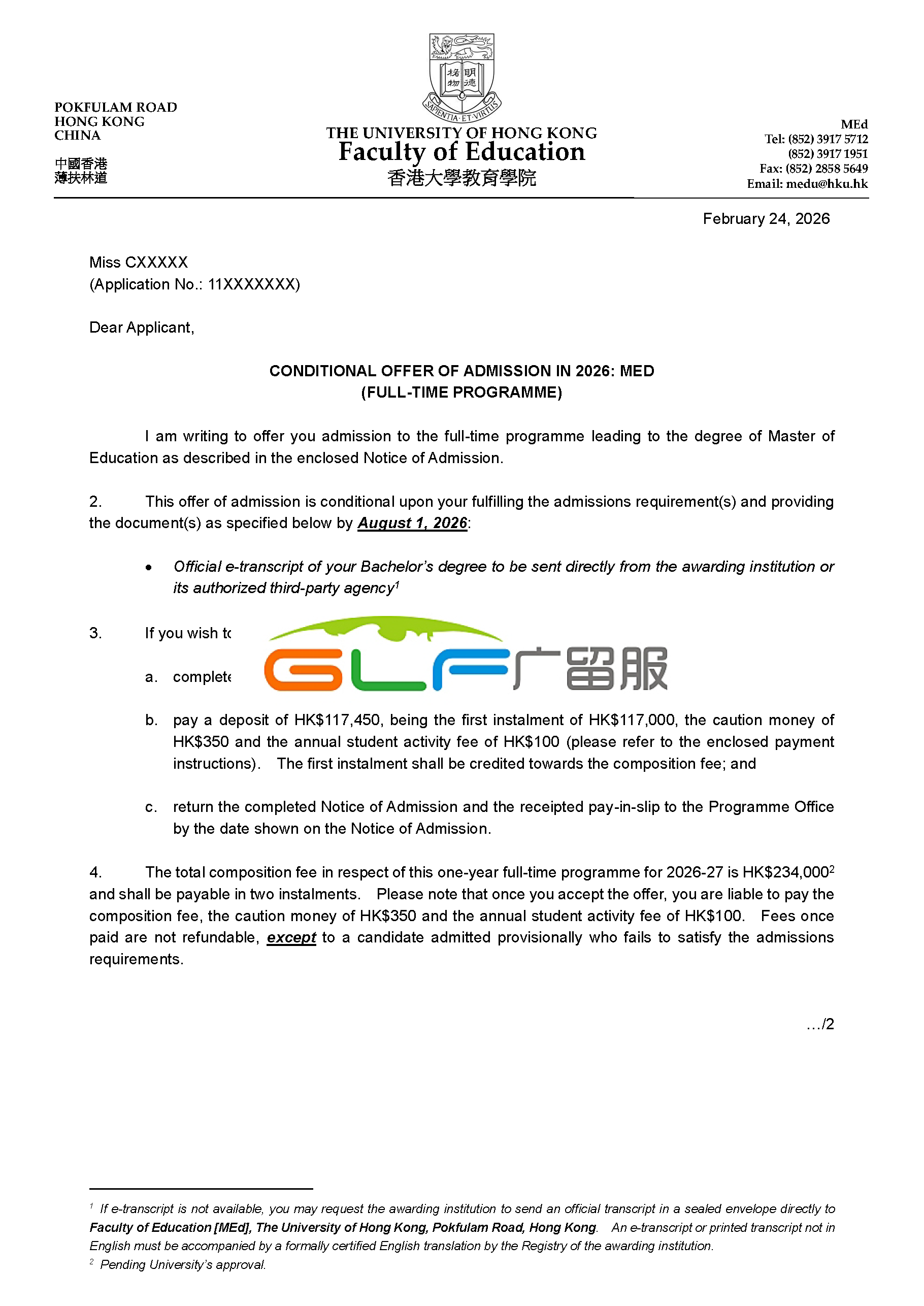 C同学被香港大学教育学硕士录取